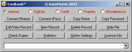 line of the CredLock main screen permits you to select the type of record