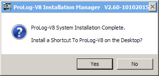Click "Yes" and Prolog will install two shortcuts on your Desktop. One will be used to launch the ProLog-V8 system, while the other will launch the Prolog Updater Program (PUP). These desktop ICON's will appear as: